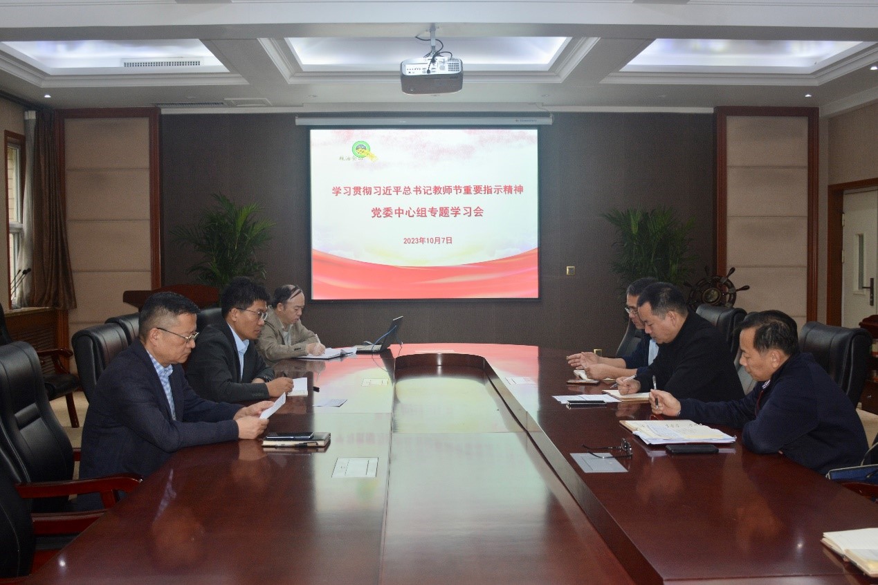 在惟实楼金谷厅召开学习贯彻习近平总书记教师节重要指示精神专题学习会议,院党委理论学习中心组全体成员参加会议,会议由学院党委书记刘新杰主持。