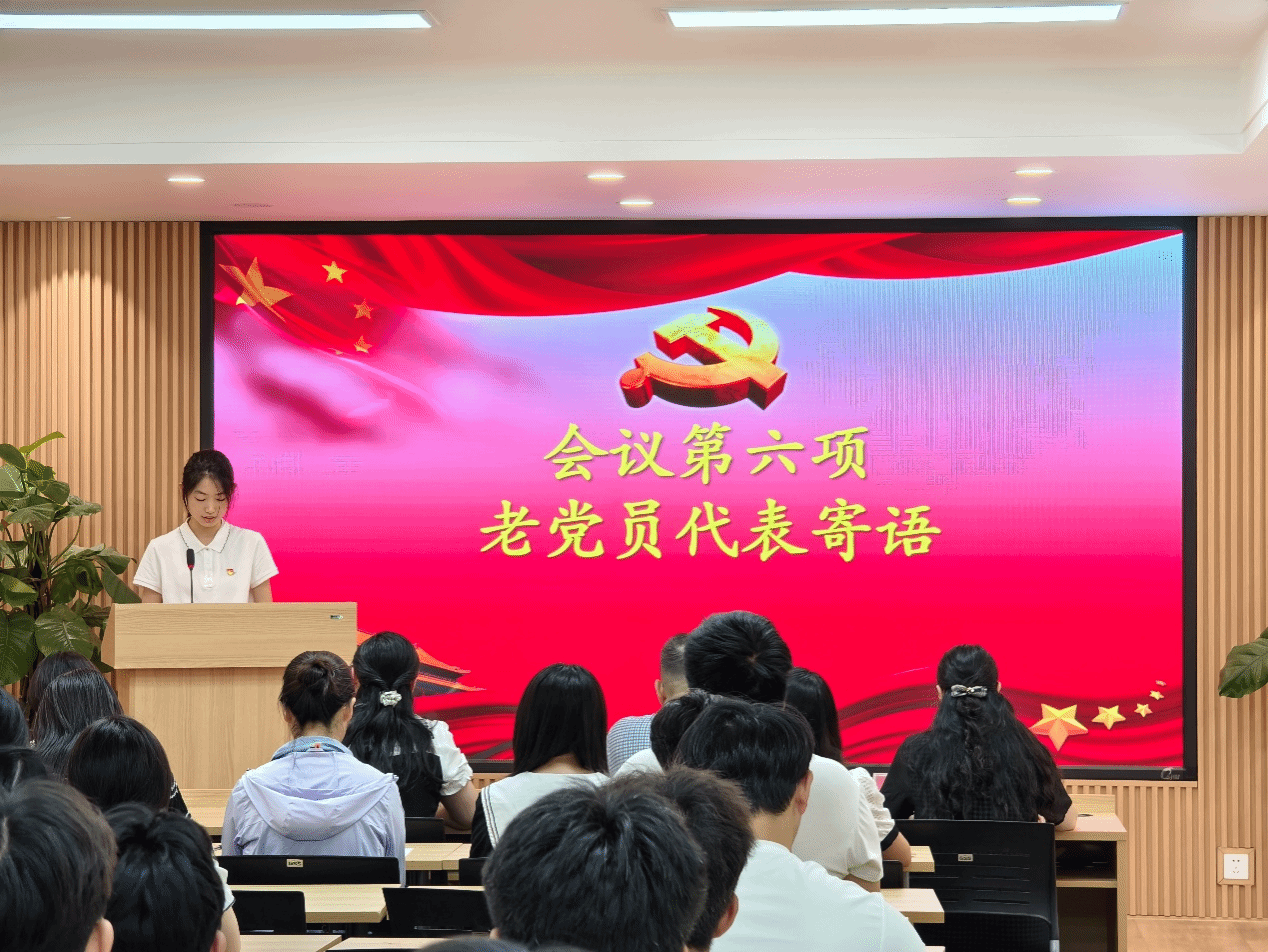 新党员代表韩金涛、老党员代表陈诗梦分别发言。韩金涛表示将继续锻炼提升,在学习生活中发挥模范带头作用。陈诗梦对新党员的加入表示热烈的欢迎,要求大家积极展现出大学生党员的责任感和使命感。