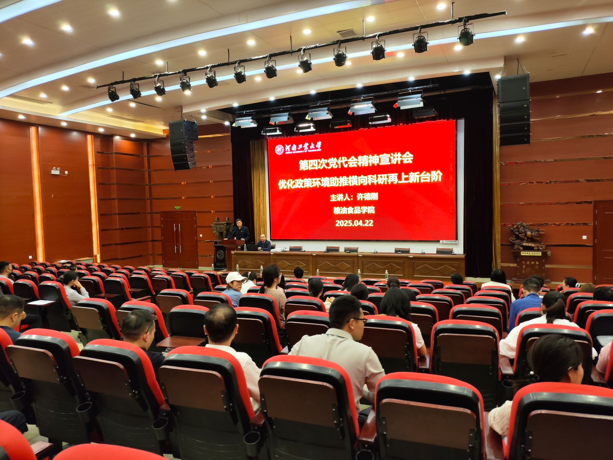 2025-04-23比赛直播app 举办学习贯彻学校第四次党代会精神宣讲会为深入学习贯彻中国共产党河南工业大学第四次代表大会精神,4月22日下午,比赛直播app 特邀学校第四次党代会精神干部专家专题宣讲团成员、产业技术研究院院长许德刚,以“优化政策环境助推横向科研再上新台阶”为主题开展专题宣讲。学院领导班子及全体教职工参加会议,会议由院党委书记张兴振主持。许德刚立足学校第四次党代会精神,从学校社会服务工作形势与任务、推动社会服务工作发展实践与举措、社会服务工作感悟三方面做了介绍。... -